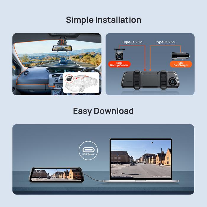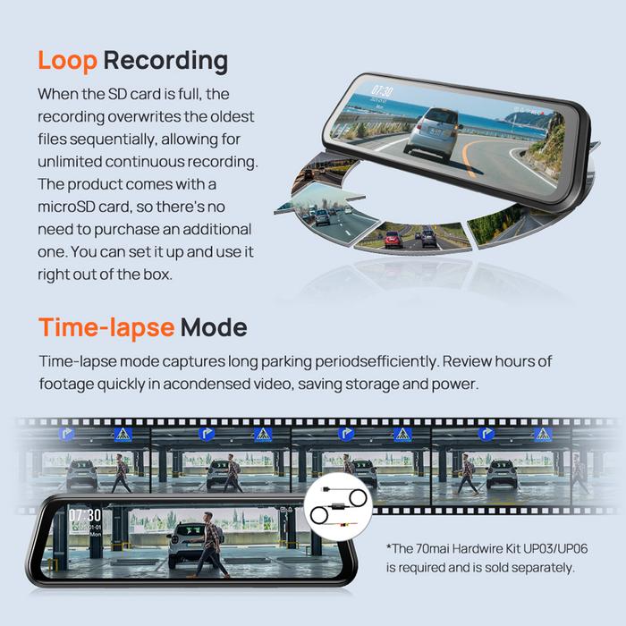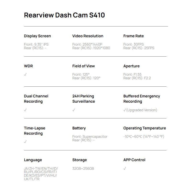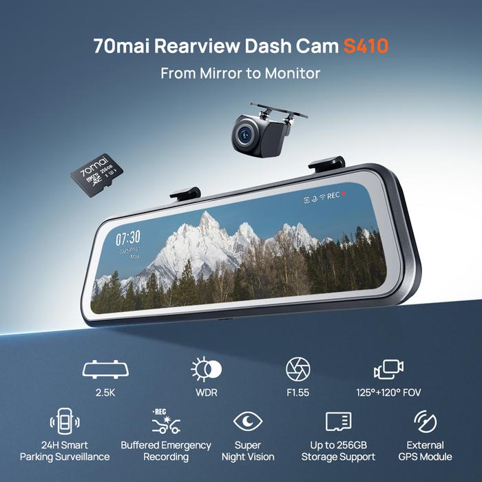 70mai Spion DVR S410 Set 9.35″ Full-Laminated Touch Screen 2.5K Resolution External GPS Module Super Night Vision