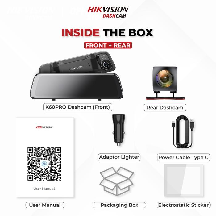 HIKVISION K60Pro Dash Cam 2K Front+Rear 1080P Full Touch Screen Voice Control Dashboard Camera Dashcam Mobil